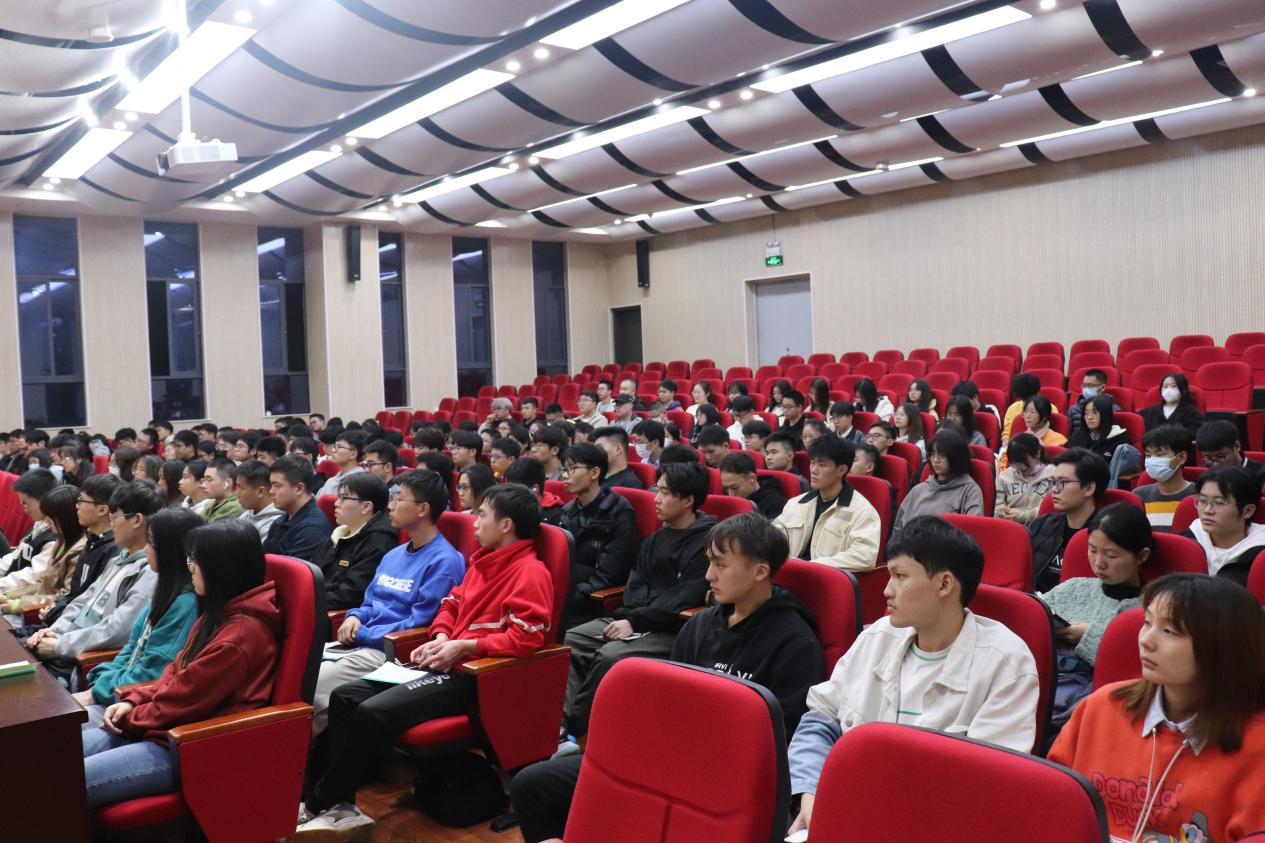 大会在雄壮的国歌声中开始。学生第一党支部书记、培训班班主任管龙陵老师向介绍了本次培训班的教学计划、纪律要求和相关课程安排。随后,盛义发书记为开班仪式致辞。盛书记引用习近平总书记在党的二十大报告中对青年工作的论述,寄予了培训班的同学们三点期望:一要明确培训目的,严守培训纪律;二要学思践悟,坚定理想信念;三要认真努力实践,争做先锋楷模。盛书记强调,培训班的同志们要通过本次培训,进一步提高自己的党性修养,争取早日加入中国共产党。典礼结束后,学院党委副书记王国平老师以“深入学习贯彻习近平新时代中国特色社会主义思想”为主题,开展了第一场理论教学。