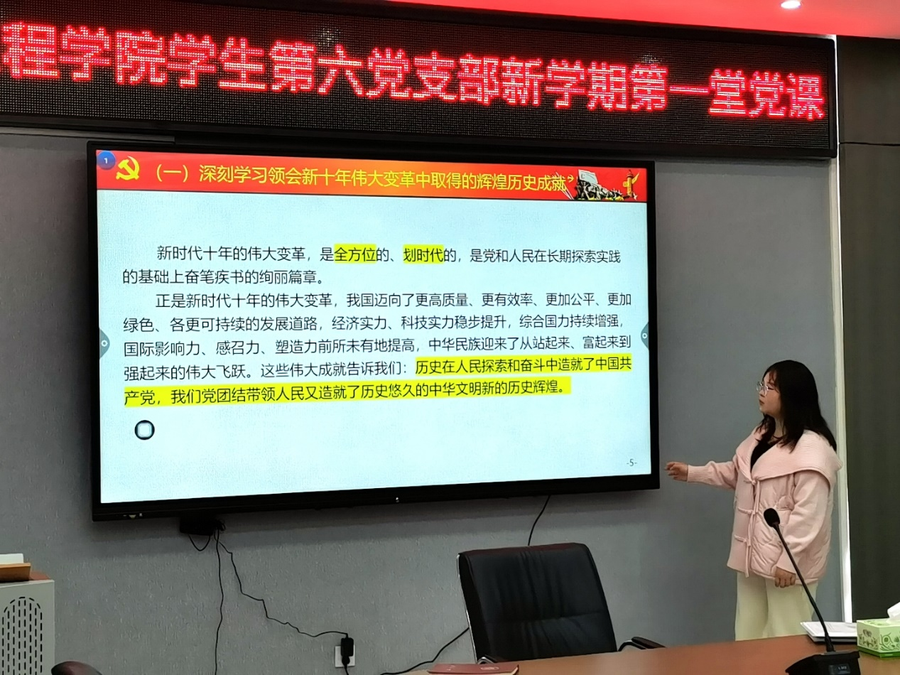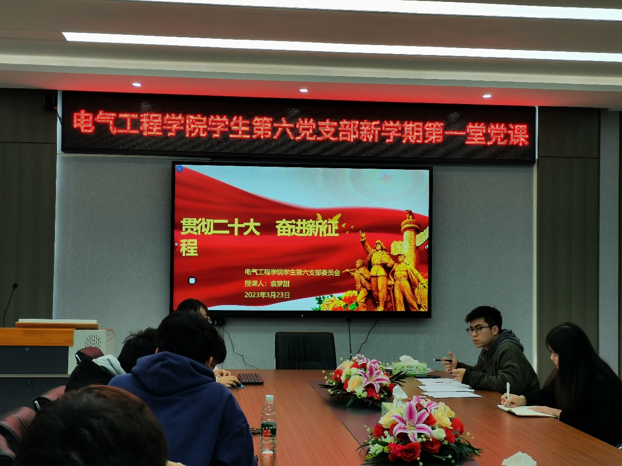 为全面深入学习贯彻党的二十大精神,引领全体学生党员坚定理想信念,凝聚奋进力量,2023年3月23日中午,365英国上市集团学生第六党支部“新学期第一堂党课”于电气楼B301开展。党课由学生第六党支部书记袁梦甜老师主讲,学生第六党支部全体党员、入党积极分子参加了此次党课。