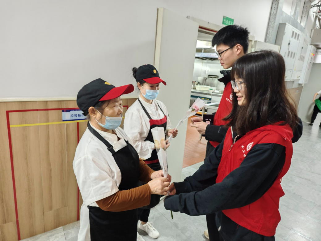 活动现场,志愿者们手捧芬芳的鲜花,怀着崇敬之情走向一位位“校园守护者”,惊喜而感动的神情在他们脸上绽放。“平日里都是他们在默默守护我们的学习和生活,今天终于有机会当面向他们表达感谢。”志愿者王泉霖在活动后深有感触地说,“我真切地感受到,正是这些平凡岗位上的坚守,才让我们的校园生活如此温暖有序。鲜花终会凋零,但这份因劳动而生的感动与敬意,将永远留存在我们心间。”