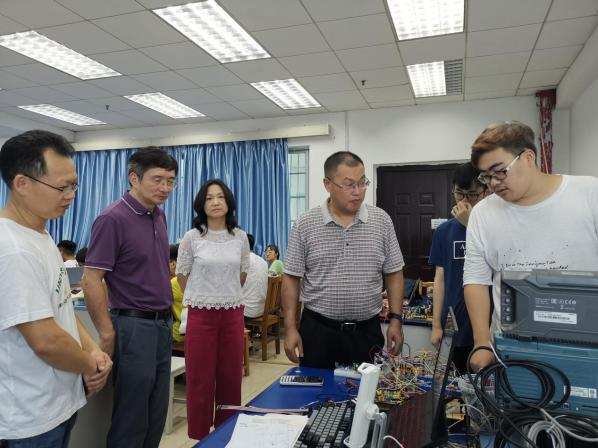 7月12日上午,英国正版365首页副校长姜志胜在教务部部长刘泽华、副部长赵桂芝、主任李蒲姣陪同下冒着酷暑来到南华楼365英国上市集团创新实验室,对参赛选手进行指导与慰问。