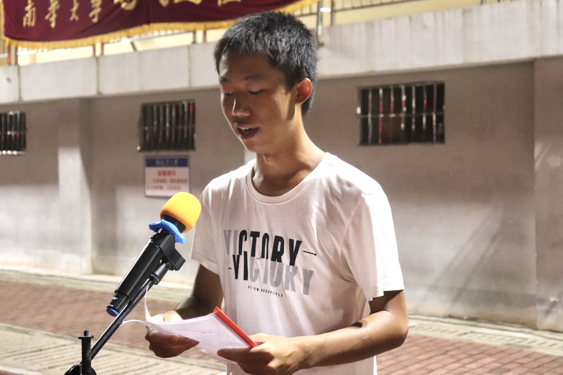 接下来,由老生代表电子1802班李嘉婉同学上台发言。李嘉婉同学从自我出发,现身说法地告诉大家进入大学要打破原来的自己,可在良好的南华校园里去塑造一个更好的自己。从她的话语中,我们感受到了一个学姐对后辈的告诫与关切。紧接着,新生代表生医2102班郭凯旋发言。郭凯旋同学回忆了自己如何进入南华校园以及和同学们在军训度过的难忘14天,并定下了未来奋斗四年、学成报效祖国的远大目标。