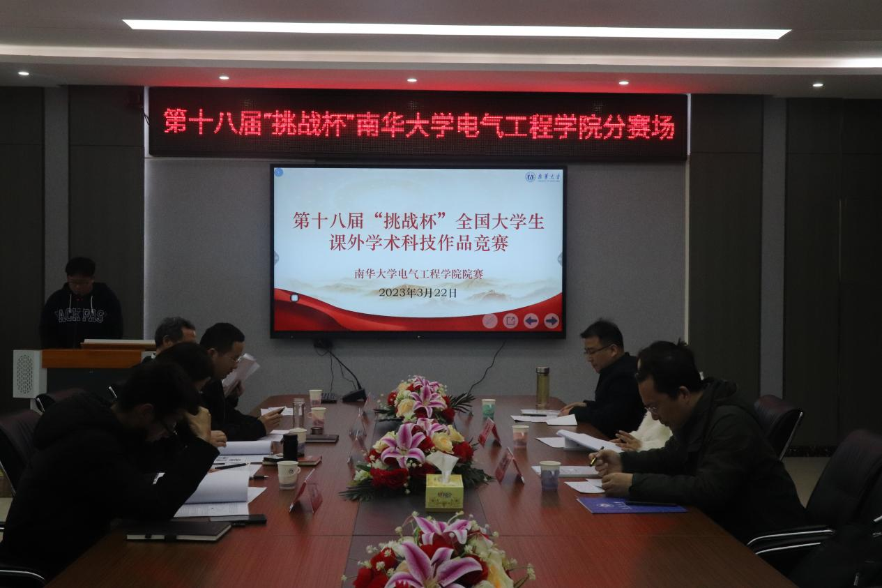 为深入学习贯彻党的二十大精神,推动实施科教兴国战略、人才强国战略、创新驱动发展战略,进一步引导广大学生努力培养科学精神和科学态度,积极学习科学知识和科学方法,2023年3月22日下午,我院于电气楼会议室B301举办"挑战杯"课外学术科技作品竞赛。学院各教研室老师组建了评审团,刘良军、张小志、王明华、曾铁军、贾星蓓、刘华、王亚军和袁梦甜等老师担任本次院赛的评委。