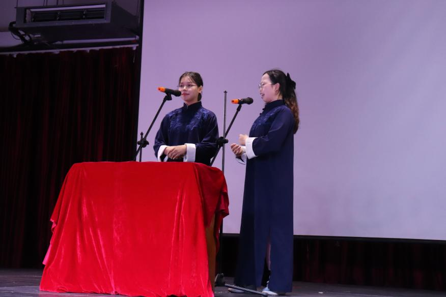 校曲艺团带来的相声《怯之旅》用幽默的语言和夸张的表现,给观众带来开心与欢笑。