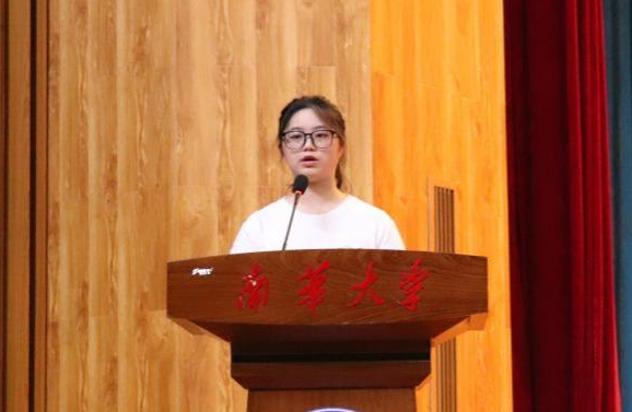 感受南华温度、传承南华精神。新生代表陈俞翰同学发言表达了对开学时老师和学长学姐热情帮助的感谢,同时立志要秉承“博学审问,慎思明辨”的学风、“明德、博学、求是、致远”的校训,做有志气,有底气,有骨气的南华学子。