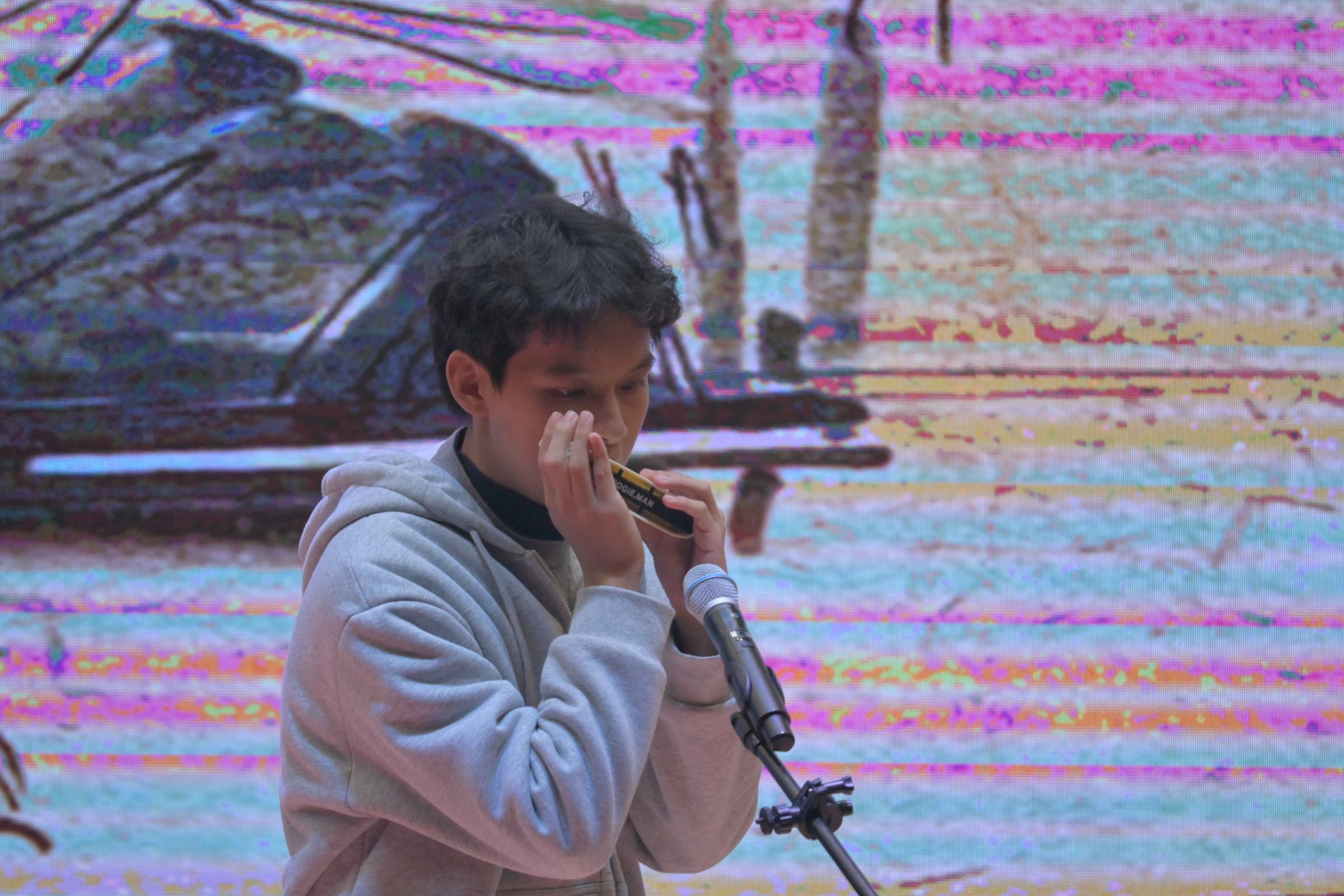 独唱《想你的夜》凭借深情嗓音瞬间凝聚全场目光。钢琴与口琴合奏的《路小雨》勾勒出宁静悠远的音乐画卷。《其实》以及《演员》的演唱充满张力,以直白的歌词对话,诉说着故事背后的深情。礼仪队的走秀步伐从容、仪态优雅,展现出青春的自信风采。吉他独奏《like a start》演绎指尖流转的浪漫。《天天》则以其轻快的旋律,带动全场情绪,带来如沐春风般的温暖与惬意。