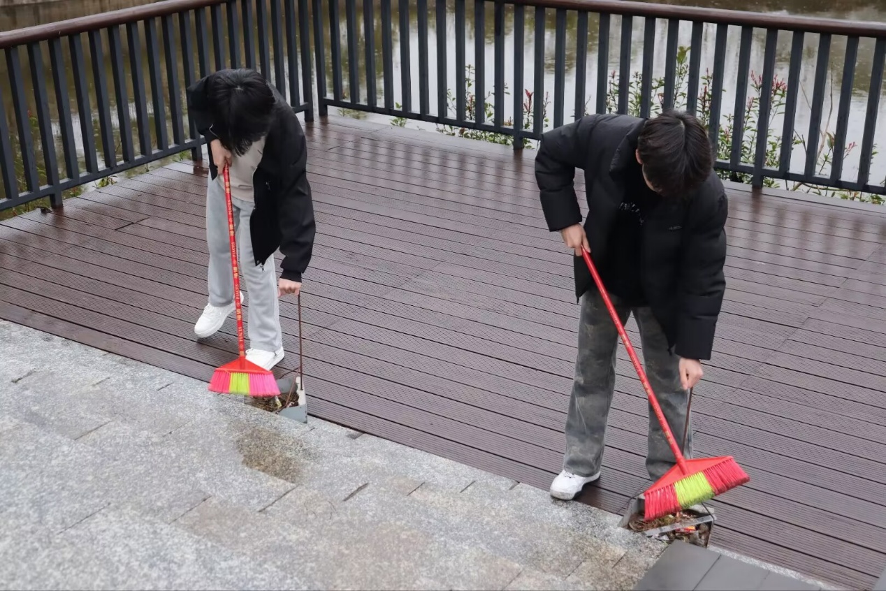 同学们积极相应号召,对参与劳动展现出极高的热情。在图书馆四楼,同学们将书籍整齐排列,为师生提供良好的借阅条件;而在崇礼楼西侧与镜湖风景带旁同学们手持工具认真清扫落叶、杂物,以实际行动为校园增光添彩。
