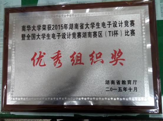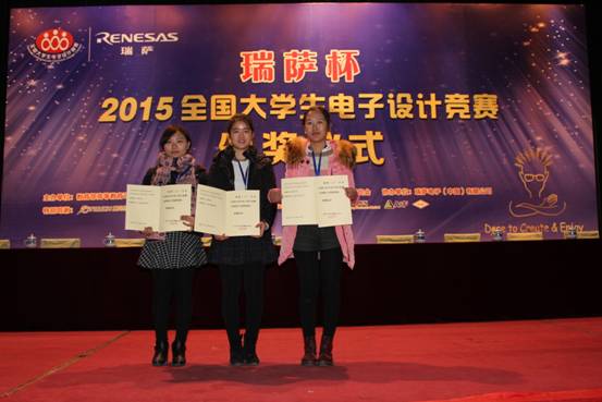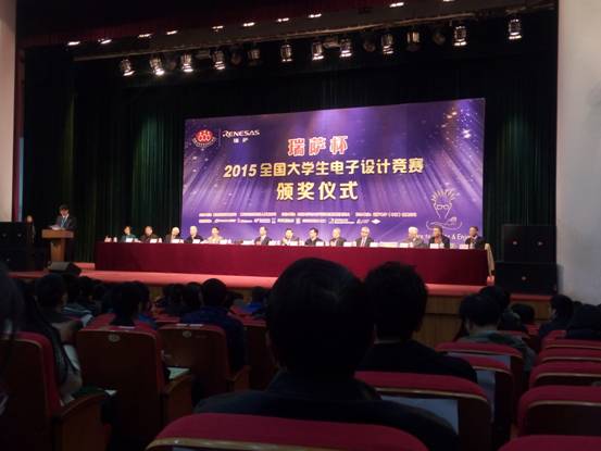 2015年12月4日,由教育部和工信部主办的瑞萨杯2015全国大学生电子设计竞赛颁奖典礼在北京邮电大学科学会堂隆重举行。我校荣获本届比赛全国一等奖的学生代表参加了本次颁奖仪式。本次比赛,我校荣获全国一等奖3项、全国二等奖1项,湖南赛区优秀组织奖,湖南赛区一等奖4项、二等奖5项、三等奖4项、优胜奖3项的好成绩,名列湖南省高校首位。