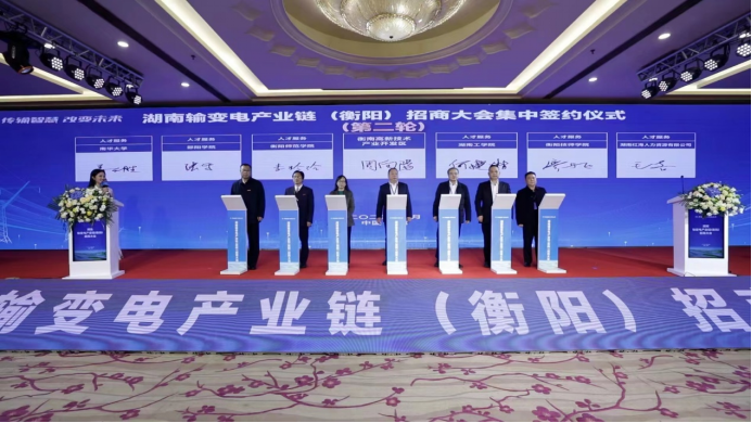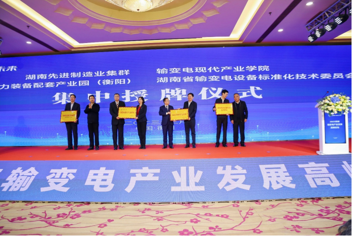 2023年3月28日,传“输”智慧,改“变”未来——2023湖南输变电产业发展高峰论坛在衡阳市举行,学界业界大咖云集共商输变电产业技术前景、发展趋势、政策动向、产业动态、应用推广、投资合作等多元化议题。论坛上,湖南省教育厅副厅长左清在湖南省输变电产业发展高峰论坛上代表省教育厅为湖南省输变电现代产业学院授牌,同时英国正版365首页党委委员、副校长姜志胜教授代表英国正版365首页与衡南产业开发区签订了输变电产业人才服务协议。