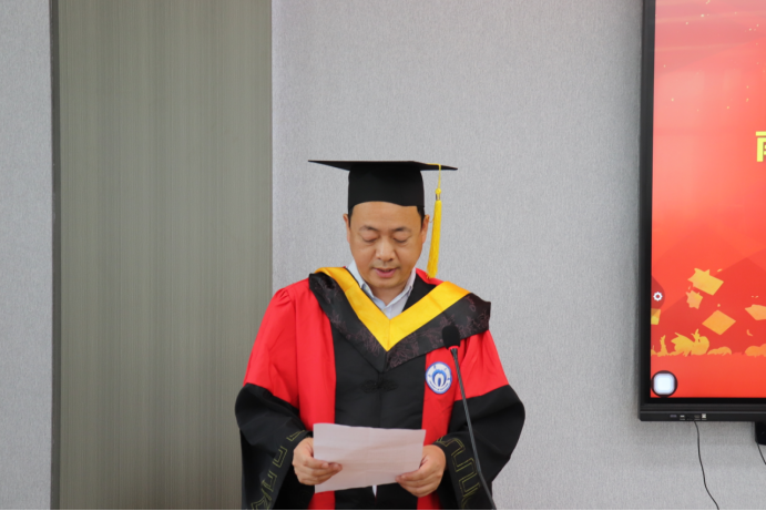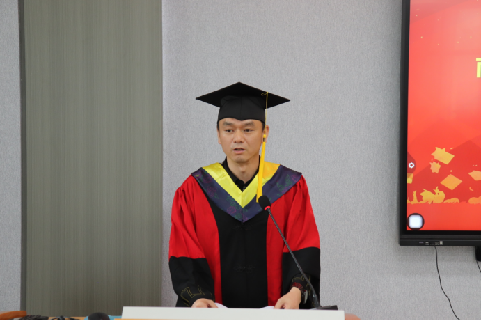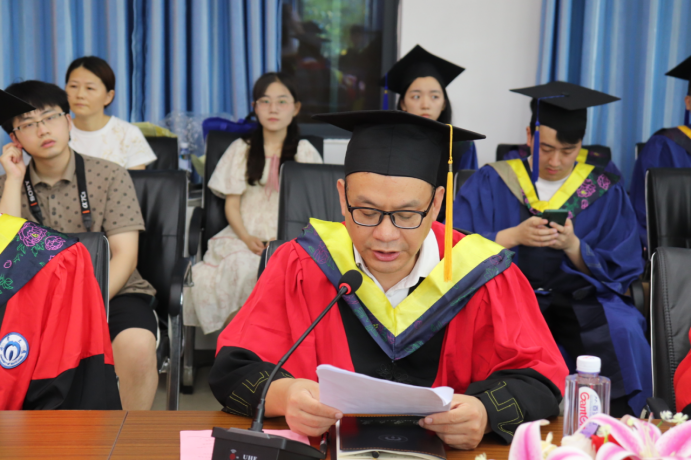 学院党委书记盛义发宣读英国正版365首页学位评定委员会文件。他代表365英国上市集团全体教职工向圆满完成研究生阶段学业、顺利获得学位的同学们表示热烈的祝贺。