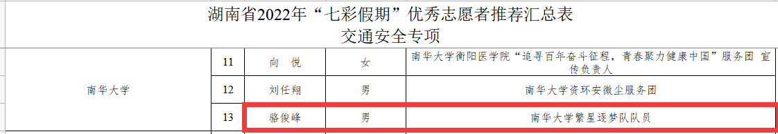 2022年7月,共青团湖南省委、湖南省青年志愿者协会联合实施青年志愿者关爱农村留守儿童“七彩假期”志愿服务项目,同时,联合湖南省公安厅交警支队组织开展全省“七彩假期 美丽乡村童行”农村交通安全宣传志愿服务活动。为宣传成功经验、嘉许优秀范例,共青团湖南省委、湖南省公安厅交警总队、湖南省青年志愿者协会拟对各志愿服务团队开展评审,遴选一批优秀团队和优秀志愿者。