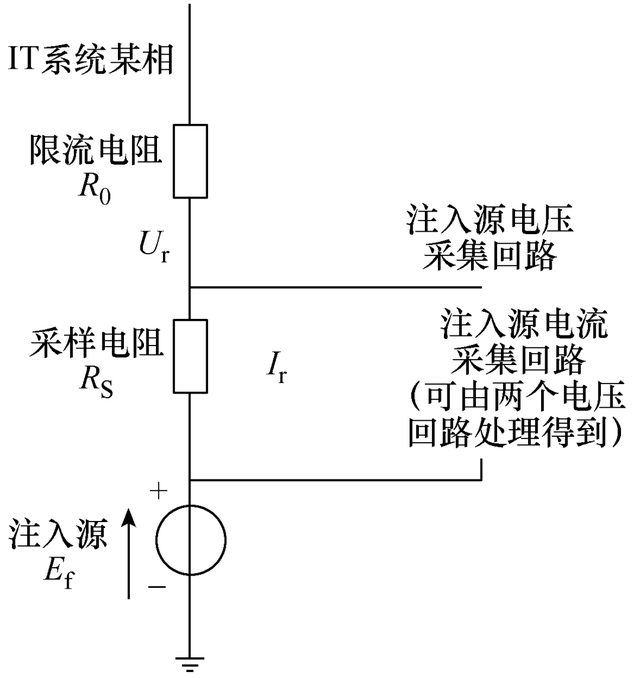 实现在线绝缘监测的主要方法是低频双频叠加法,通过多次在线测试表明,低频电压幅值和频率的选取对绝缘检测精度有重要影响。当系统发生单相接地故障时,绝缘电阻偏大、分布电容过大会引发注入源回路电流偏小和故障支路阻性电流分量偏小的问题,从而导致测量误差,无法满足绝缘监测精度要求。