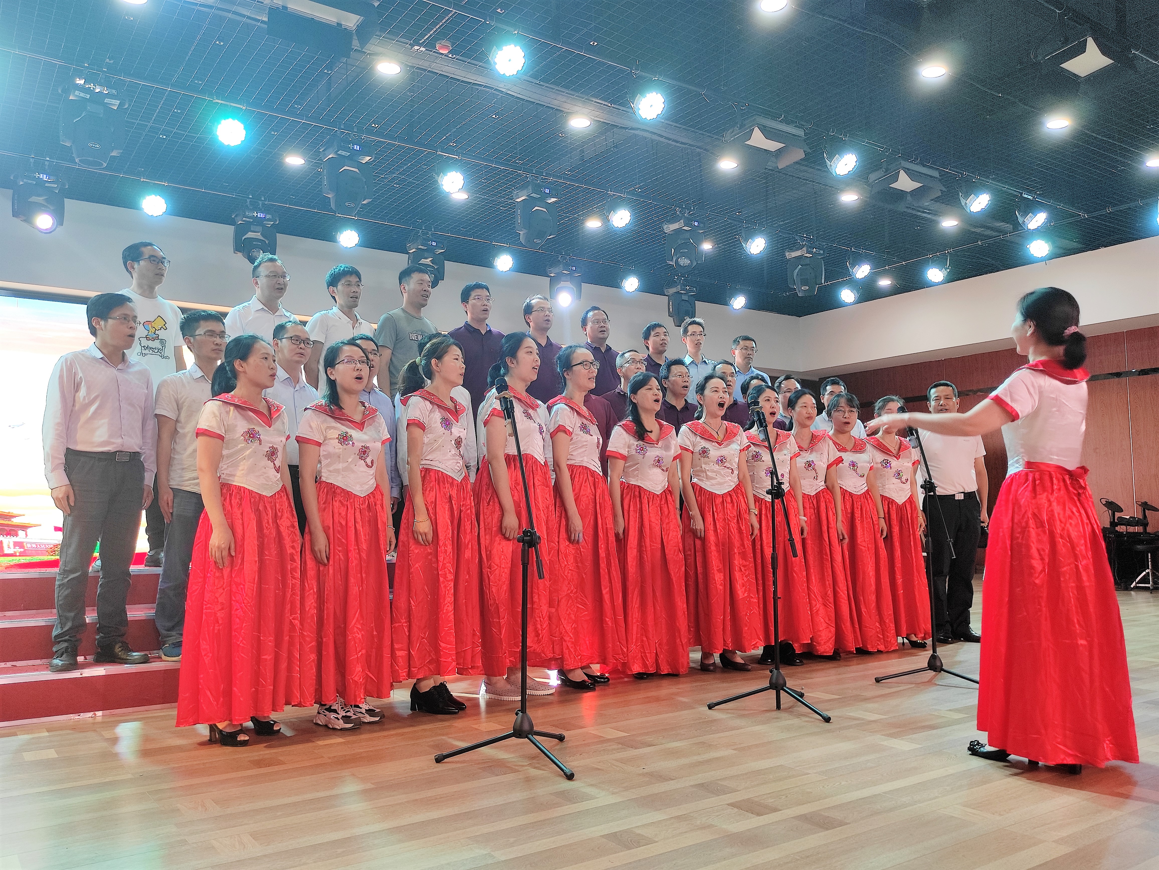 学院全体教师党员合唱了《祖国不会忘记》,组织员尹检龙葫芦丝独奏《唱支山歌给党听》, 晚会的最后,表演者舞动鲜红的党旗,全场齐唱《没有共产党就没有新中国》,把晚会气氛推向了高潮。