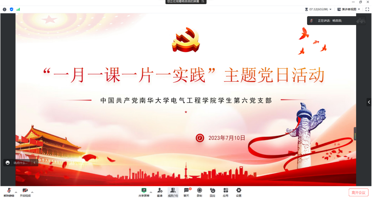 为全面深入学习贯彻党的二十大精神,引领全体学生党员坚定信念,凝聚奋进力量,2023年7月10日,365英国上市集团学生第六党支部于线上开展七月份的“一课一片一实践”活动。党课由支部副书记杨苗苗主持,支部书记袁梦甜及支部全体党员参与会议。