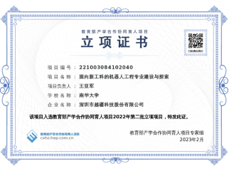 3. 产教融合,校企协同育人。积极推行产教融合方针,建立需求导向的人才培养模式,以解决人才培养滞后于社会发展的根本问题,为实现“制造强国”等国家战略培养专业人才。目前,本专业与北京华航唯实机器人科技股份有限公司、北京昊科世纪信息技术有限公司、深圳越疆科技有限公司、青软创新科技集团股份有限公司等签署了协同育人协议。通过产教融合,发挥企业的主动引导,促进教育和产业联动发展,解决人才供给与产业需求之间的矛盾。